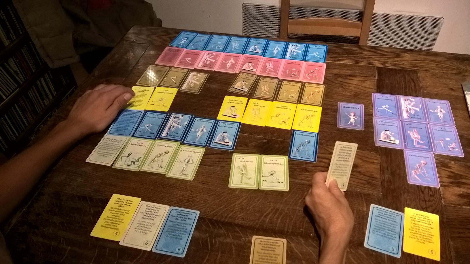 Un jeu pour réviser un peu la chronologie de notre Préhistoire. Se rendre compte des formidables durées qui séparent les premiers outils, l’invention du feu, celle de l’agriculture et de l’écriture… et là finalement la si petite durée qui comprend toute notre histoire « récente » depuis l’Antiquité… Un jeu pour les enfants, pour les adultes, enfin pour tout le monde quoi !