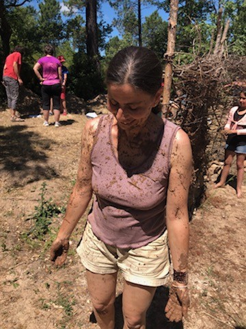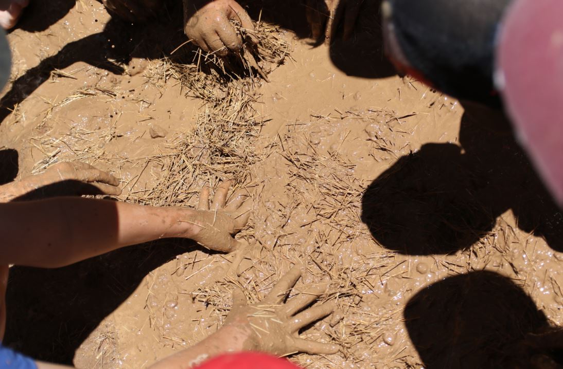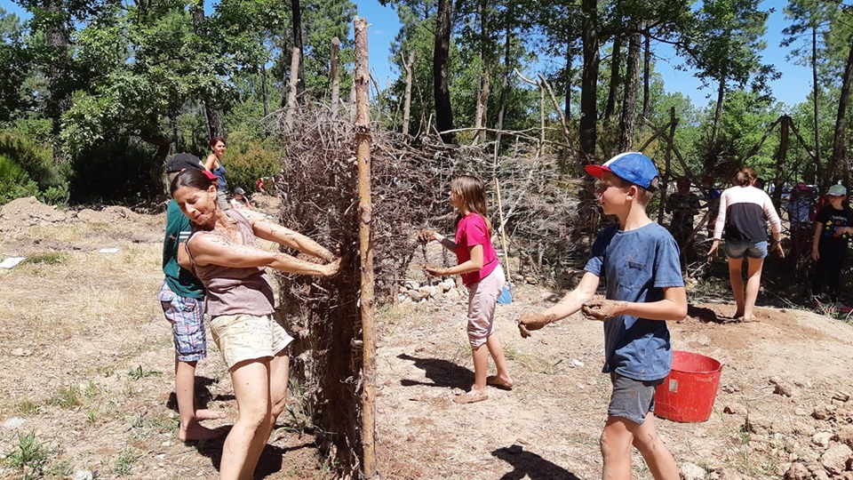Les deux classes ont pu s’essayer au montage d’un mur en torchis en participant à la construction de l’abri « néolithique » du CAREX.