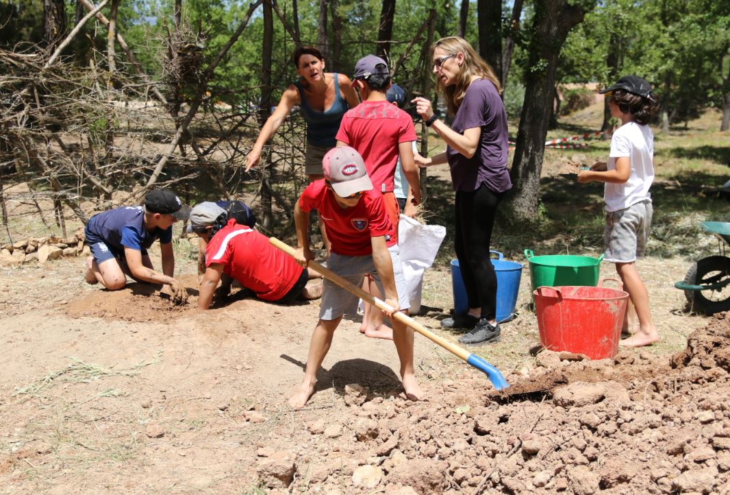 Les mêmes CM1 ont aussi pu s’initier à la fouille archéologique dans un « vrai-faux » site de taille de silex. Encadrés par deux jeunes formateurs sympathiques.