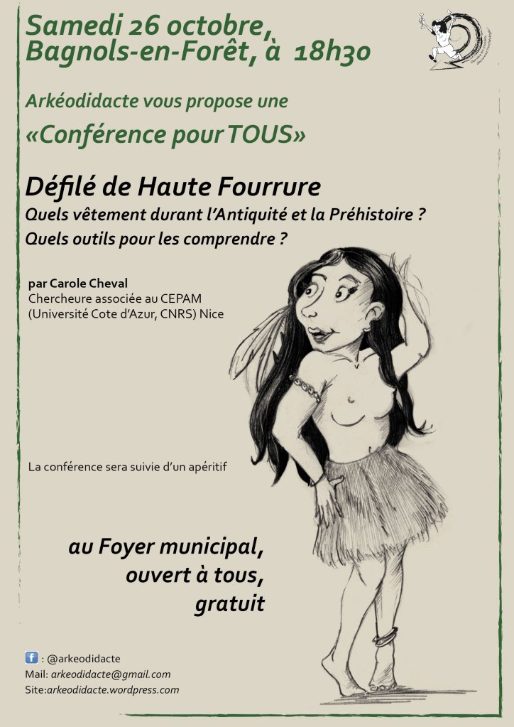 Carole Cheval, archéologue, chercheuse associée au CEPAM (Nice) nous présentera ses recherches. Oublions un peu les peaux de bêtes mal ajustées pour voir un peu ce que l’on sait vraiment et surtout comment on le sait.