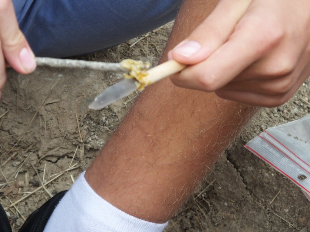 Les activités étaient diverses : travail du bois (fabrication de flûtes, de fûts de flèches ou de sagaies) ; travail du cuir (fabrication d’une bourse en peau) ; travail de la pierre (création de pierres gravées) ; travail sur coquillage (fabrication de colliers), sur os et évidemment fabrication de flèches à pointe en silex avec adhésif (résine et cire) et tendons. Les visiteurs pouvaient ensuite tester leurs flèches en tirant à l’arc sur une cible artificielle faite d’os long, et de paille.