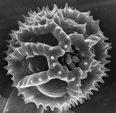 Ici divers types de pollens (fausses couleurs). Photo Wikipedia : Dartmouth Electron Microscope Facility, Dartmouth College