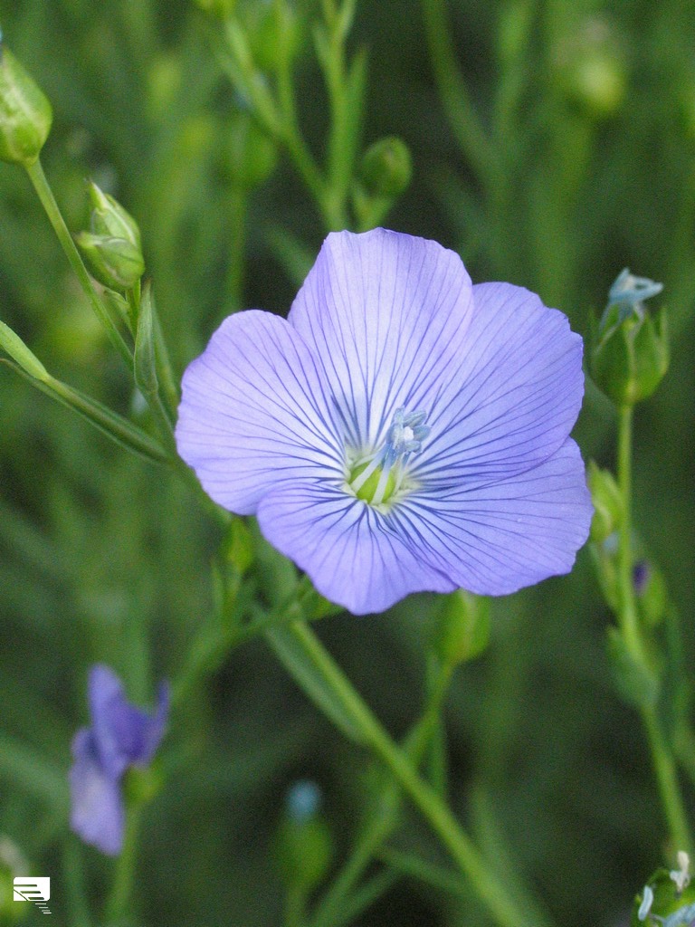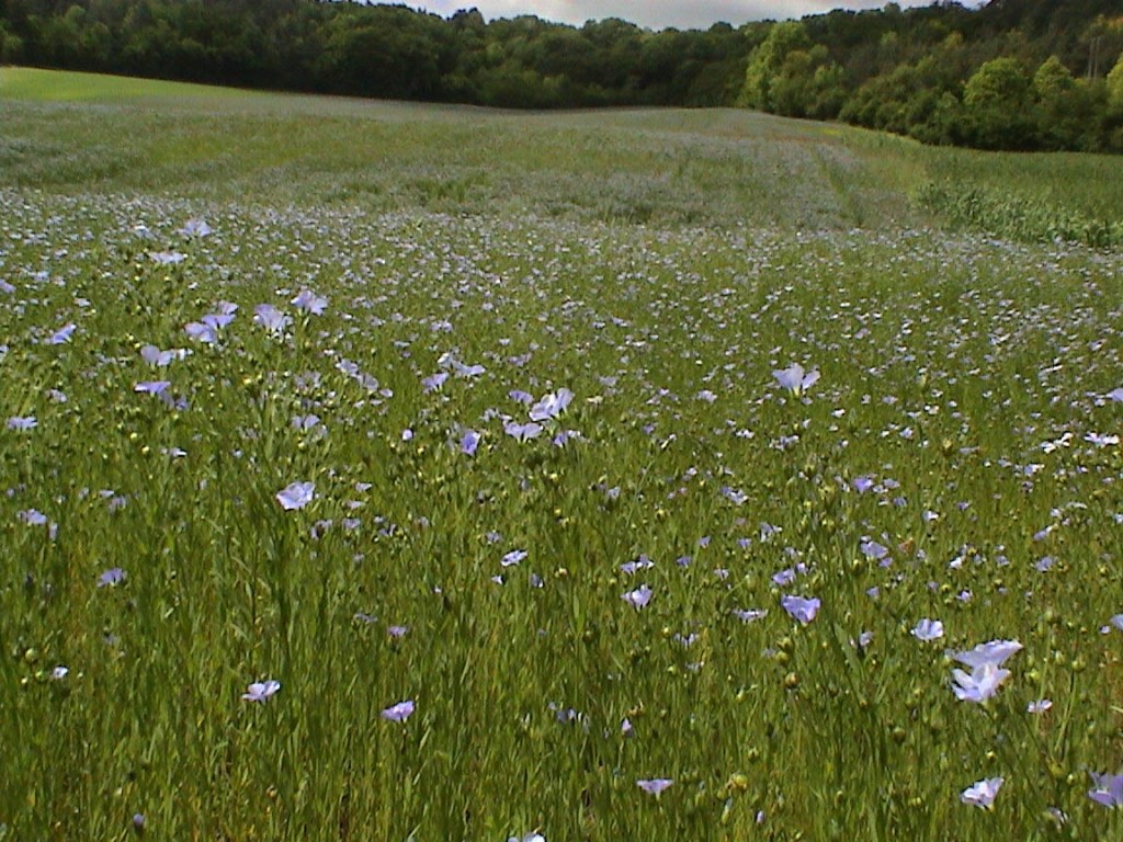 Cette jolie fleur bleue, c’est du lin, plante très importante pour les égyptiens puisque tous les vêtements blancs que l’on voit représentés sr les fresques, sont en lin. Par ailleurs le lin était aussi employé pour son huile. Le lin était moissonné à différentes périodes selon l’usage qu’on souhaitait en faire : les jeunes fibres étant plus belles (plantes encore en fleurs), les fibres plus vieilles moins souples, mais qui permettaient de récolter les graines.