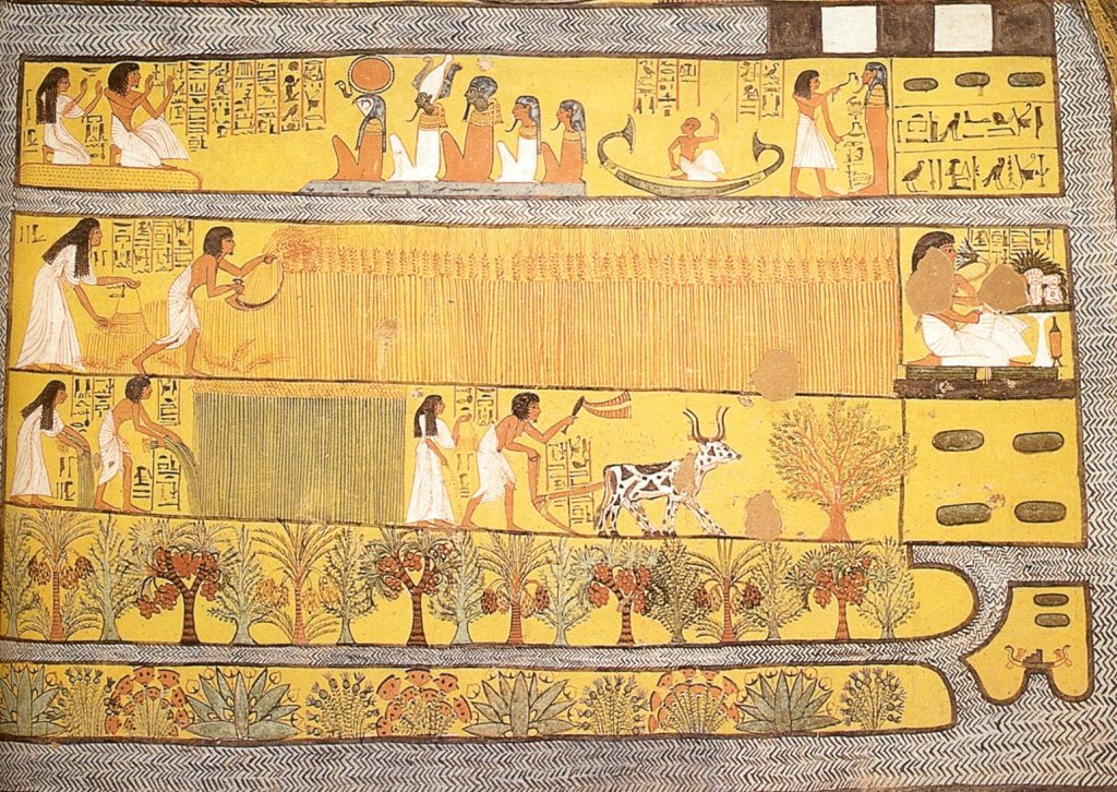 Plusieurs participants ont évoqué la moisson de blé, elle est présente sur la fresque au dessus de la scène qui nous intéresse. D’autres ont pensé à la récolte du mil, du roseau, de la canne à sucre, du papyrus…Des hypothèses intéressantes, mais il s’agit en réalité d’une autre plante…un indice ?