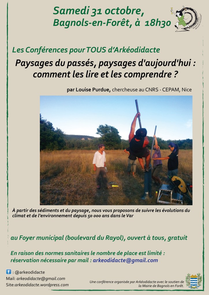 Conférence gratuite, samedi 31 octobre 2020 à partir de 18h30, foyer municipal de Bagnols en Forêt, boulevard du Rayol. En raison des normes sanitaires le nombre de place est limité : réservation nécessaire par mail : arkeodidacte@gmail.com.