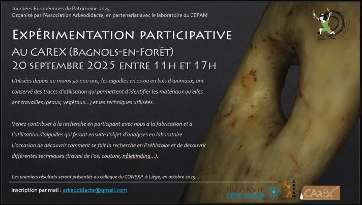 L’activité sera encadrée par Carole Cheval, chercheuse associée au CEPAM, spécialiste des techniques textiles en Préhistoire et Protohistoire.