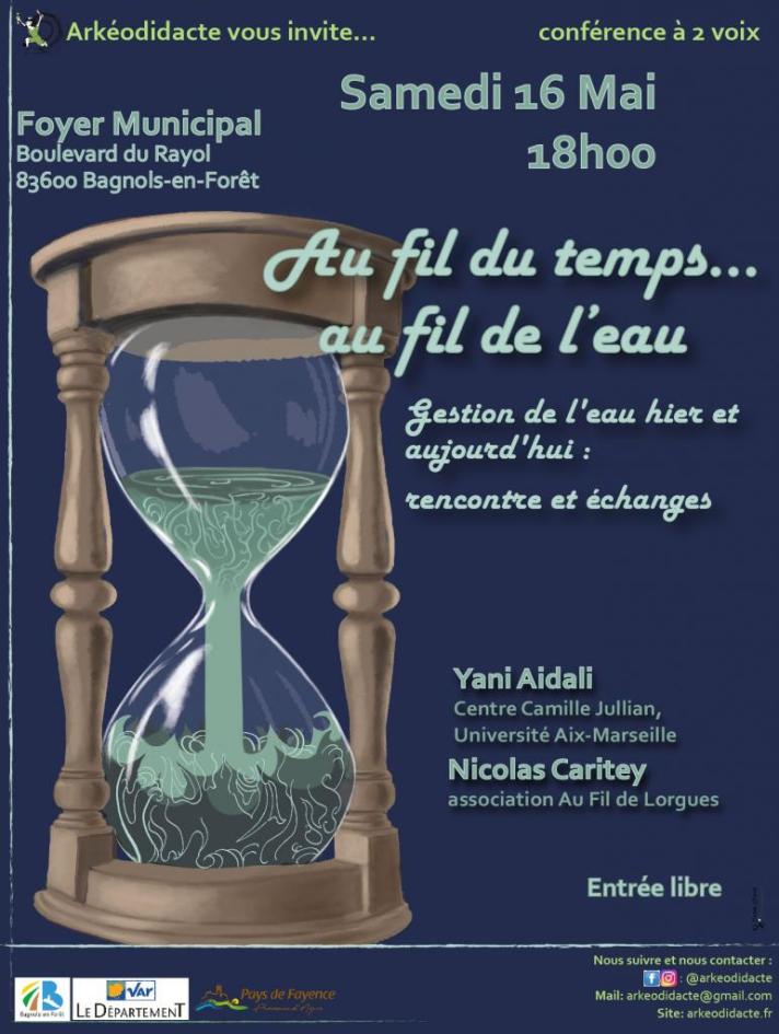 Dans le cadre des “Conférences à deux voix”, Arkéodidacte vous invite à un échange nourri par deux regards croisés : celui du passé, avec Yani Aidali, doctorant à l’université Aix-Marseille, qui nous présentera les connaissances actuelles sur les aménagements hydrauliques dans le monde romain antique ; celui du présent avec Nicolas Caritey, membre de l’association Au Fil de Lorgues qui nous parlera de l’expérience de cette association autour de la valorisation et de la remise en état de la source de la Canale à Lorgues et des aménagements qui en dépendent.