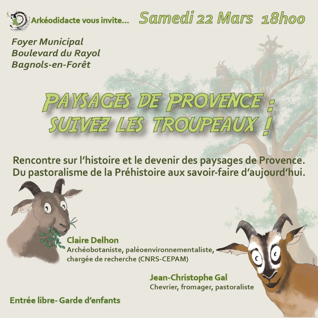 L'archéologie aide à comprendre le présent. Samedi 22 mars à 18h, au foyer municipal de Bagnols-en-forêt, Arkéodidacte vous invite à une rencontre autour du rôle du pastoralisme et de l'agriculture dans la construction et le maintien des paysages qui nous sont familiers.