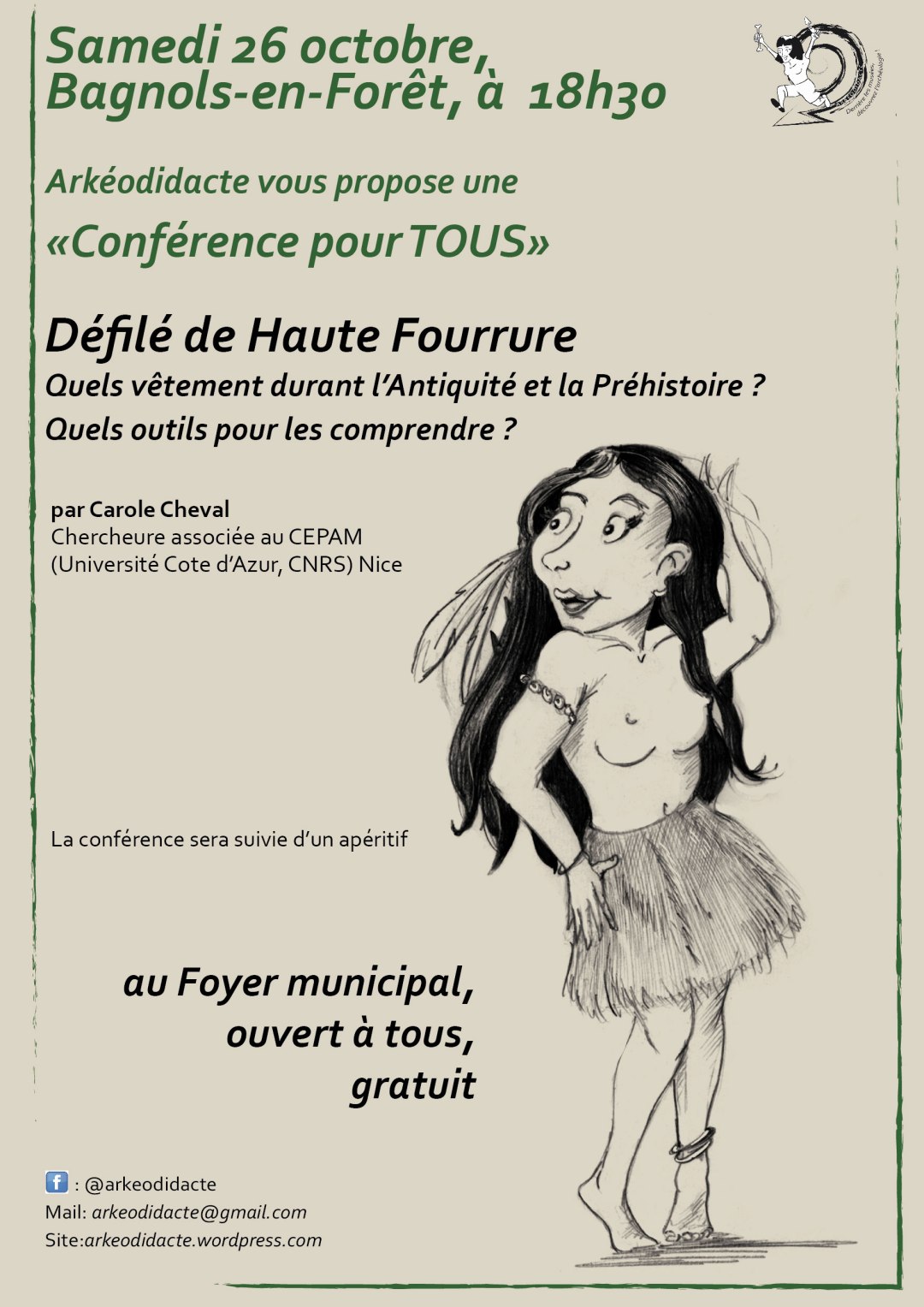 Samedi 26 octobre à 18h30 au foyer municipal de Bagnols en Forêt, boulevard du Rayol. Une conférence gratuite, ouverte à tous. Pour cette première "Conférence pour Tous", Arkéodidacte vous propose de découvrir ce que l'on sait des textiles et des vêtements de la Préhistoire à l'Antiquité.