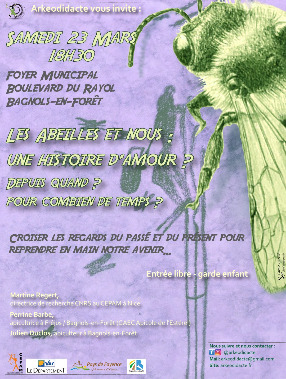 Samedi 23 Mars, 18h30 Arkéodidacte vous invite à une soirée de conférence et de discussion avec une archéologue et deux apiculteurs de Bagnols-en-Forêt pour croiser les regards de l’histoire et du présent sur notre relation aux abeilles et les dangers qui pèsent sur son avenir.
