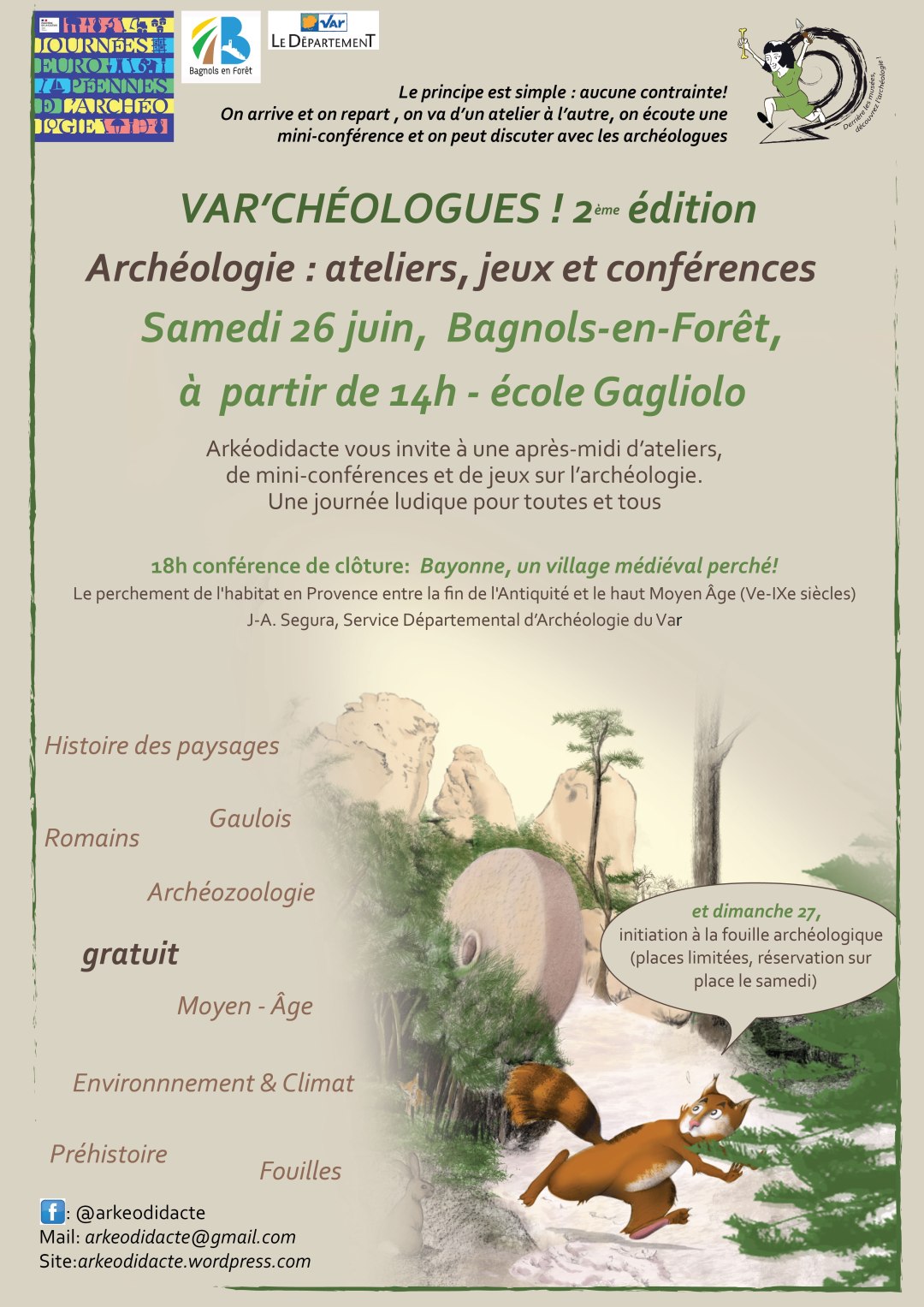 Pour la deuxième édition de Var'chéologues, nous vous invitons à Bagnols-en-Forêt le 26 juin dans la cour de l'école Gagliolo à partir de 14h pour des ateliers, jeux et mini-conférences. Une journée pour toute la famille, ludique, variée et évidemment gratuite !