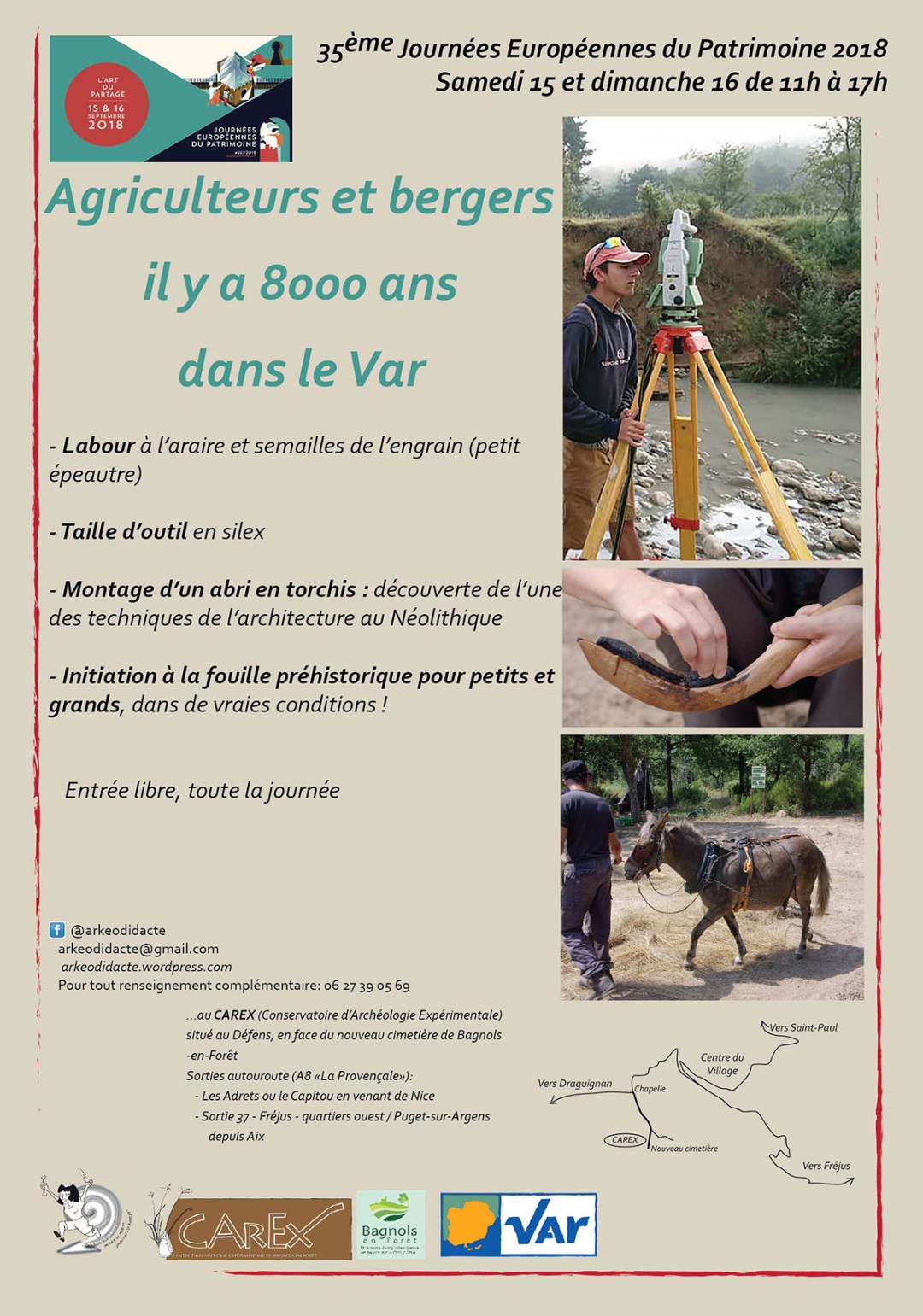A l'occasion des 35èmes journées Européennes du Patrimoine, les samedi 15 et dimanche 16 septembre 2018, Arkéodidacte vous propose deux jours d'animations au CAREX à Bagnols-en-Foret.